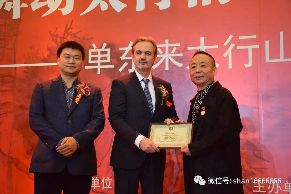 十一月十日,俄罗斯美协主席,俄罗斯总统文化艺术顾问,俄罗斯艺术科学院院士,人民画家、俄罗斯联邦公众院文化分部委员会主席.卡瓦利丘克 安德烈 尼古拉耶维奇,专程从俄罗斯到北京参加“翰墨舞动太行情,东方风来共筑梦”一一单东来太行山系列书画展。鉴于单东来在中俄及国际艺术文化交流中做出的贡献,授于单东来“苏里科夫”勋章,并向其颁发勋章。这是中国唯一获得该勋章的国画家。